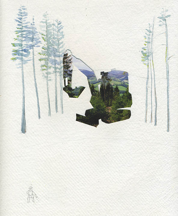 ‘Cryptic Digger’ Collage, watercolour and pencil by Kate Foster Credit: Kate Foster and Forestry Commission.